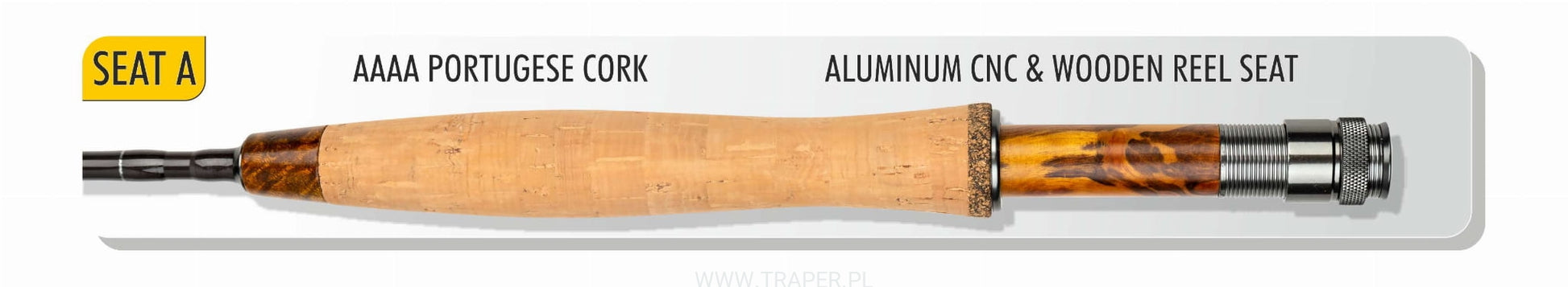 The most important element of this rod is high modulus Japanese carbon 40+46TT blank. This rod has got high dynamic and even bending what is important for nymphing. The rod is equipped with Pacific Bay guides. The handle is made of Portuguese AAAA cork. In top of cork is finished with exotic wood and bottom with mixed cork with gum. The gun metal reel seat is made of CNC technology aluminium. The seat is built on wood with unique rings. The rod comes complete with two extensions, which enable adjustment of the rod to the venue type and angler's needs. You can arrange four rod variants. Each enables to fish with various techniques. Starting from dry fly, through short up to long nymphing. In transport the rod is protected by CORDURA tube with divided chambers. The rod has got the five years service warranty.