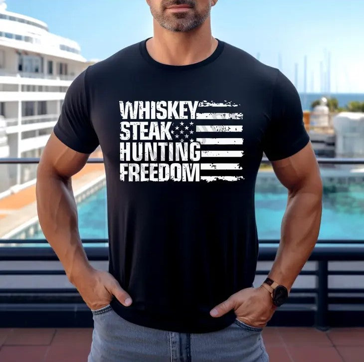 Whiskey, Steak, Hunting, Freedom Graphic Tee